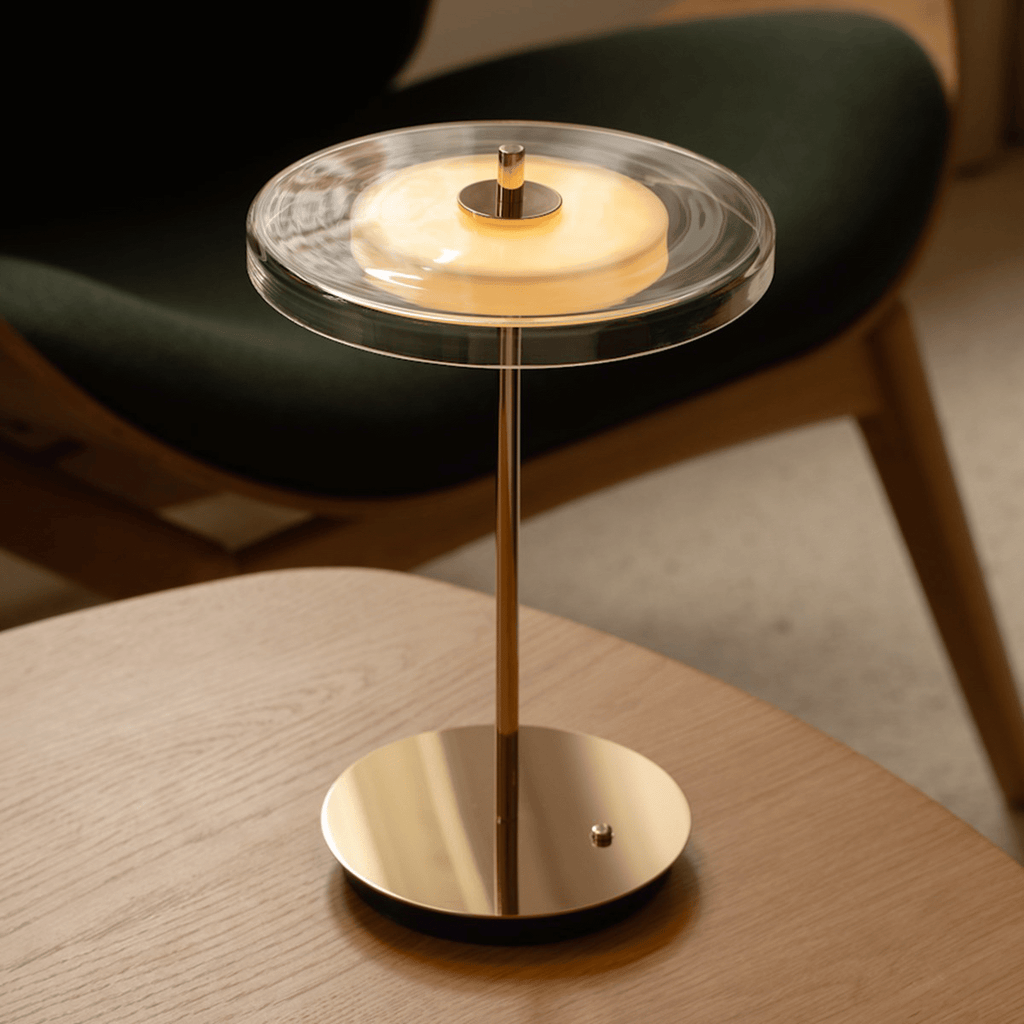 With its glass body and opal core, the lamp casts a warm, even glow that transforms any setting. Perfect for dining tables, sideboards, or simply creating a cozy ambience, it brings soft illumination that enhances every moment and space with effortless elegance. The opal diffuser disc at the centre turns light into a soft, glare-free glow, doubling as a design piece even when switched off.