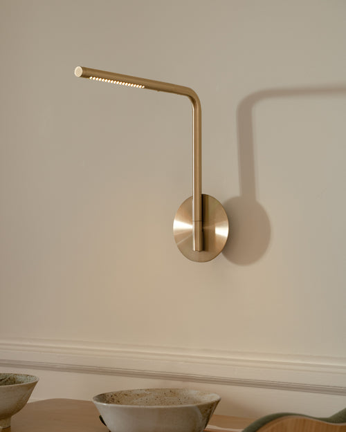 Omni Pivot è una lampada da parete versatile che unisce un design pulito a una funzionalità pratica. Il braccio si estende dalla parete, mentre il corpo luminoso può ruotare e il braccio può essere regolato, così da orientare la luce esattamente dove serve.