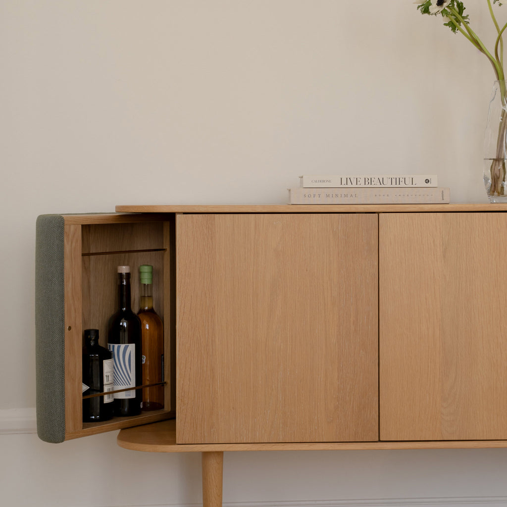 Treasures är ett anpassningsbart skåp med ett nordiskt uttryck. Skåpet är tillverkat av fanerat ekträ och de böjda sidorna har ett anpassningsbart överdrag som ger...