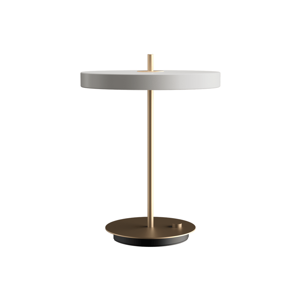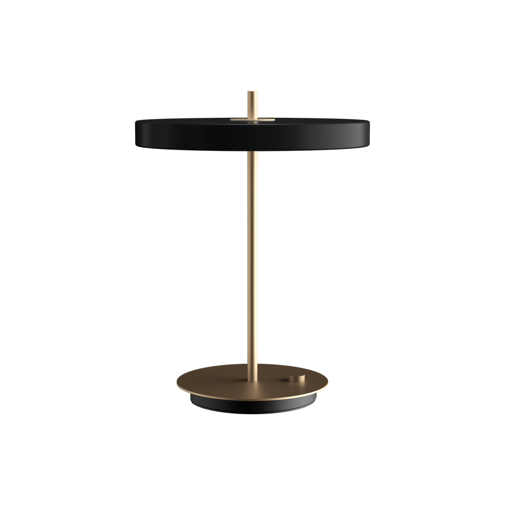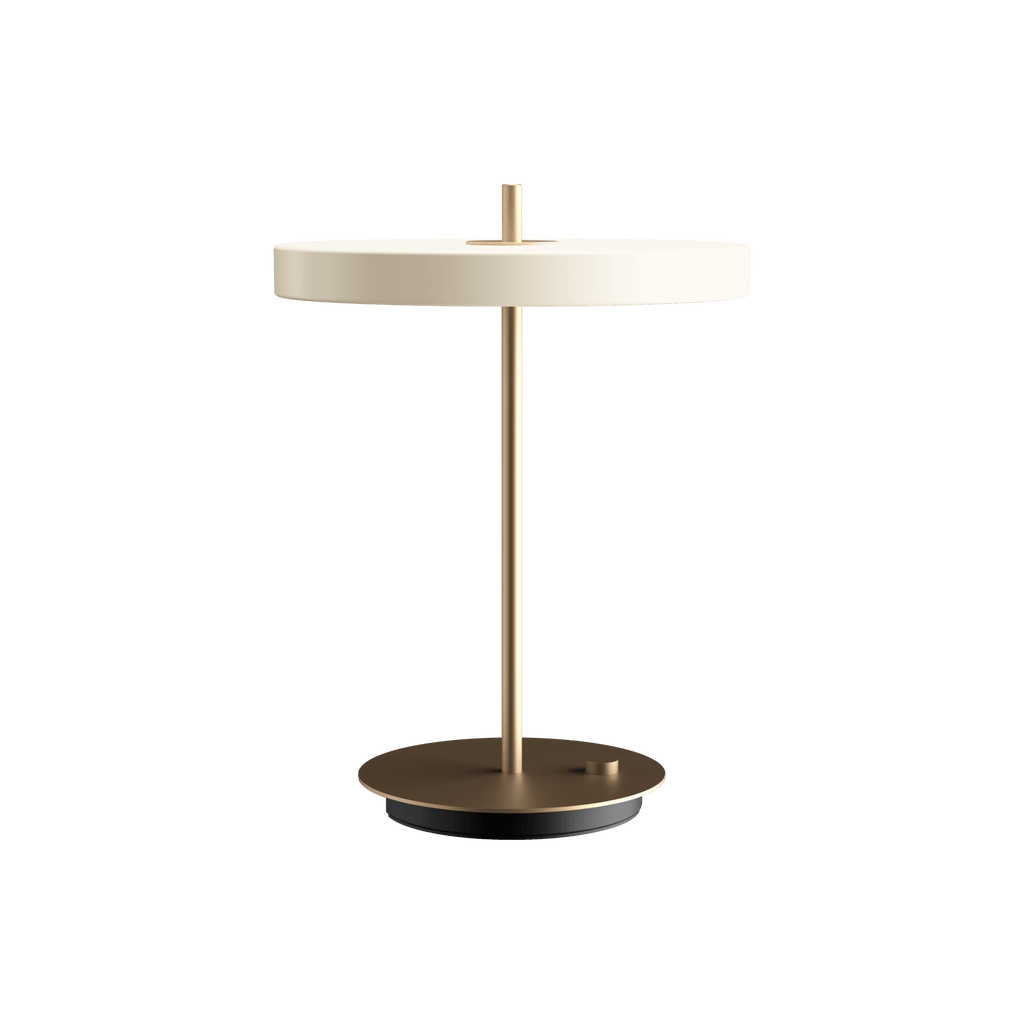 Bordslampan Asteria omsluter en inbyggd LED-panel med en diffusor, som sprider ett mjukt och behagligt ljus i rummet. Den vertikala mässingsstaven blir en elegant axel...