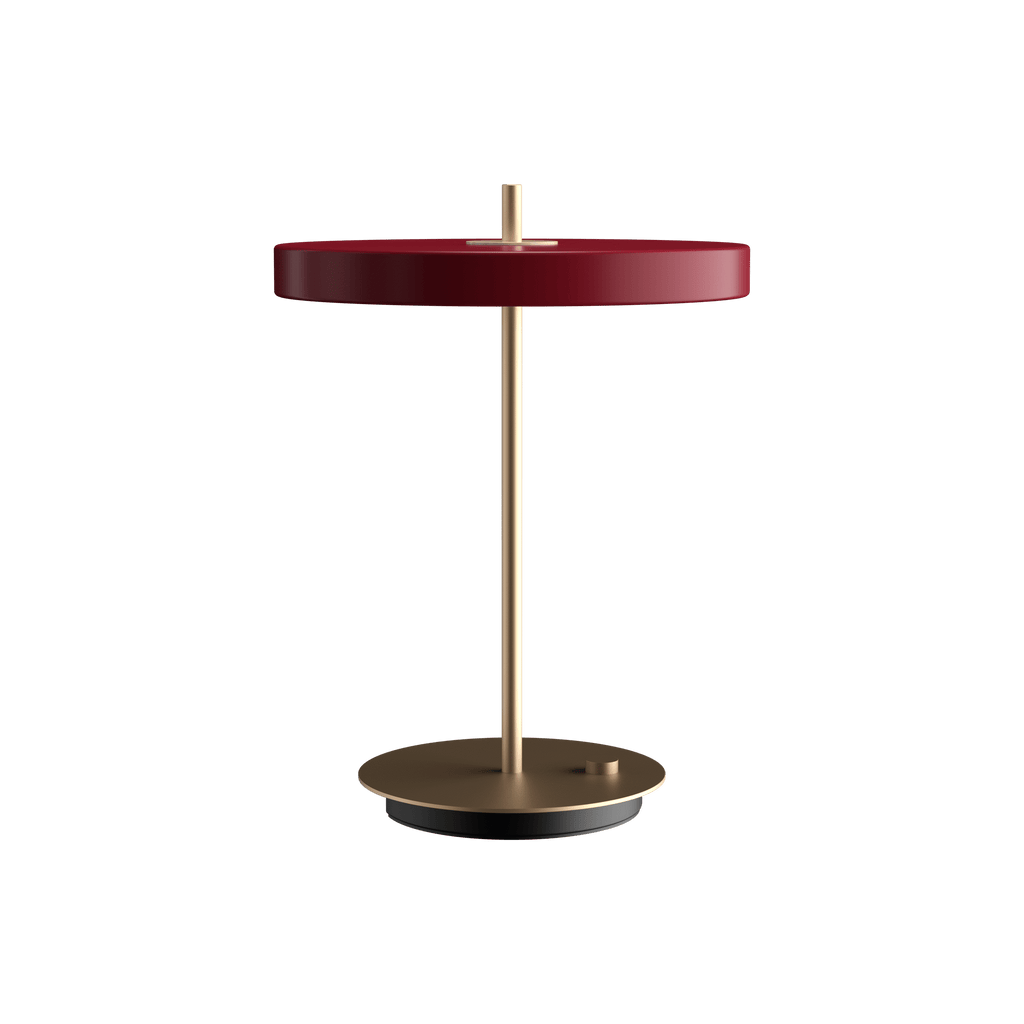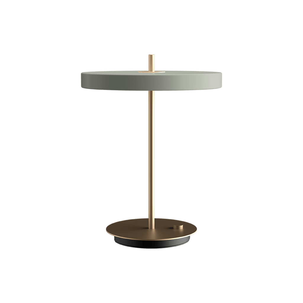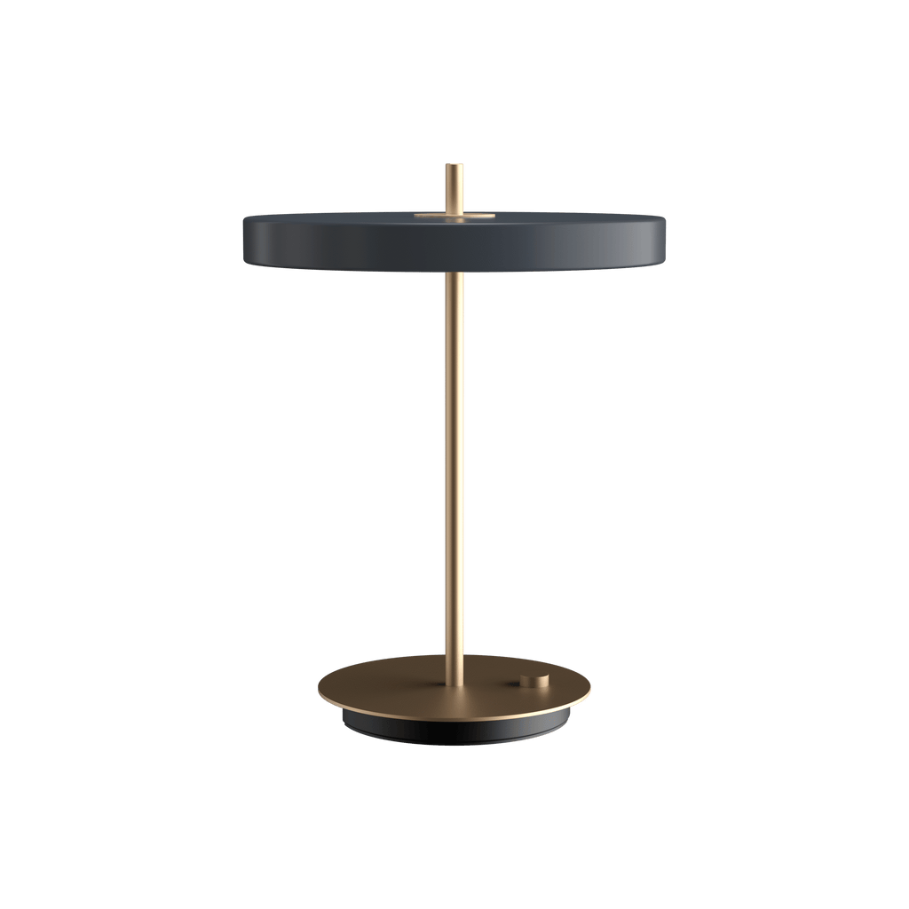Bordslampan Asteria omsluter en inbyggd LED-panel med en diffusor, som sprider ett mjukt och behagligt ljus i rummet. Den vertikala mässingsstaven blir en elegant axel...