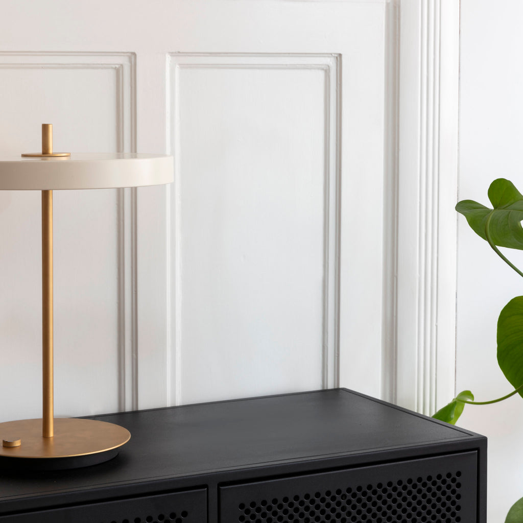 Asteria table lamp has a hidden USB-port, so you can charge your phone – even when the light is turned off.